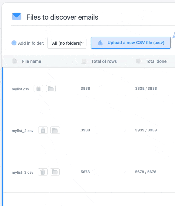 Recherchez et confirmez les e-mails professionnels en téléchargeant des listes de noms et d'entreprises en une seule fois.